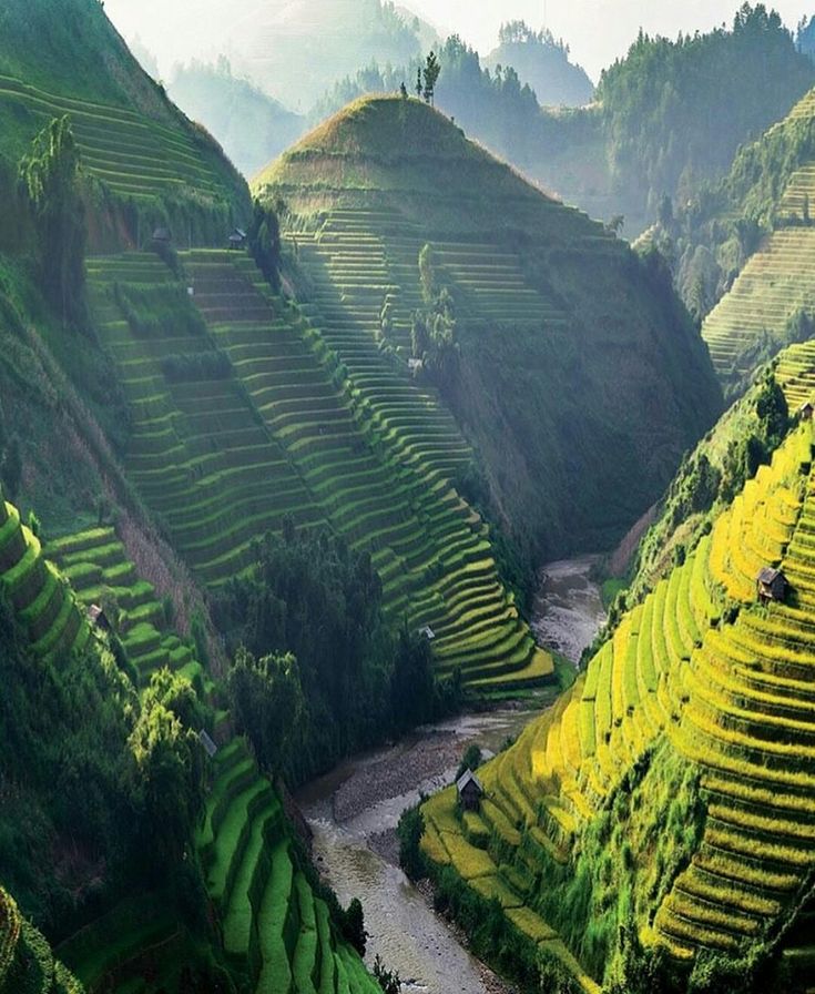 В северном Вьетнаме проливные муссонные дожди смывают богатый гумус с высокогорья, оставляя медленно растворяющийся глинозем и оксиды железа, которые придают почве ее характерный красноватый цвет.