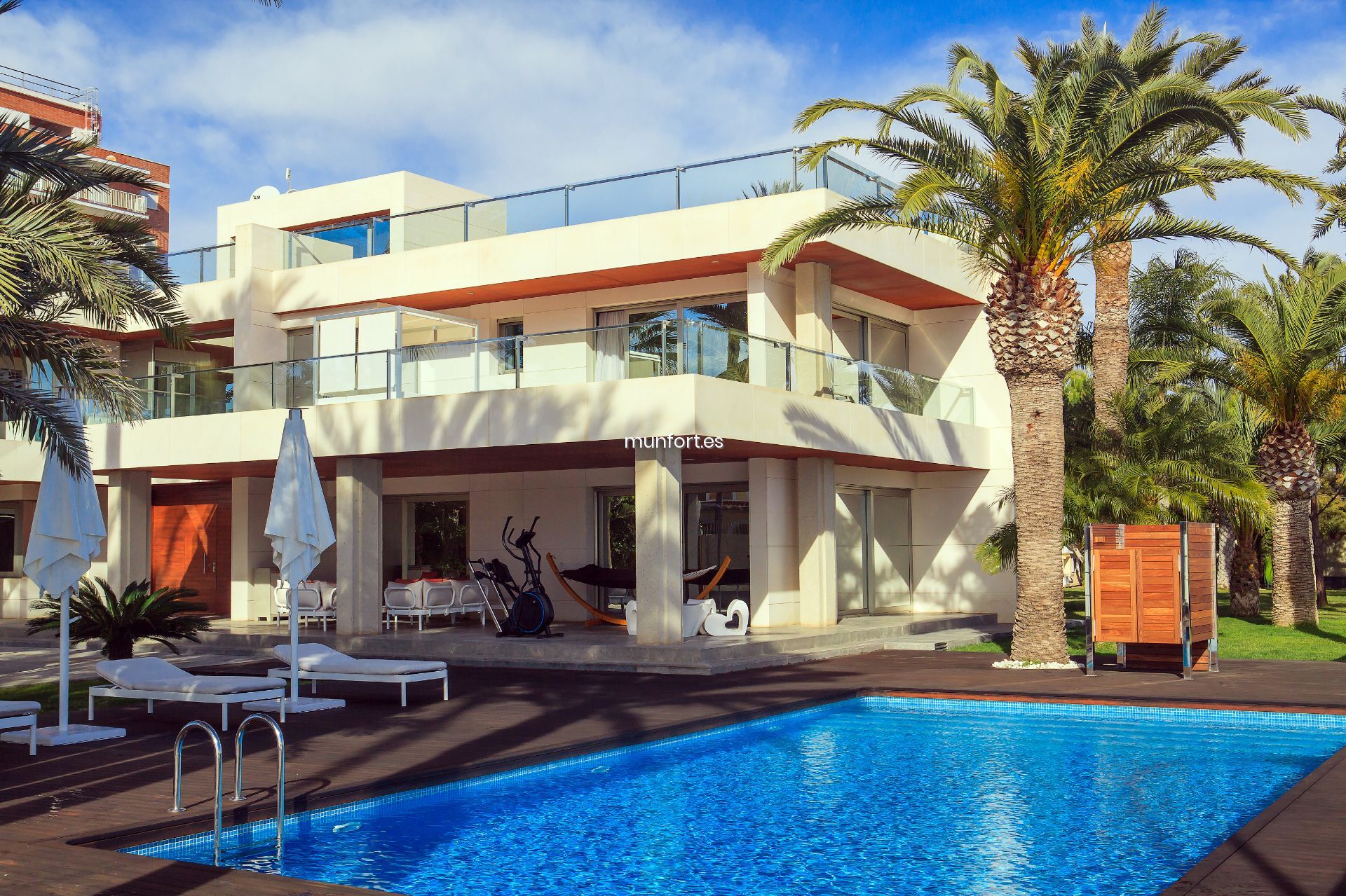 , столовая, частный бассейн, большой сад и барбекю с традиционной дровяной печью.Расположенный в самом сердце Аликанте, он предлагает великолепный вид на пляж Сан-Хуан и Бенидорм и имеет летнюю и зимнюю террасы. Посетители могут также насладиться игрой в бильярд и баре в лаундже, позаниматься на беговой дорожке в фитнес-центре или побаловать себя спа-процедурами или сеансом массажа. В целом, это изысканное место для семейных встреч или большой компании друзей.