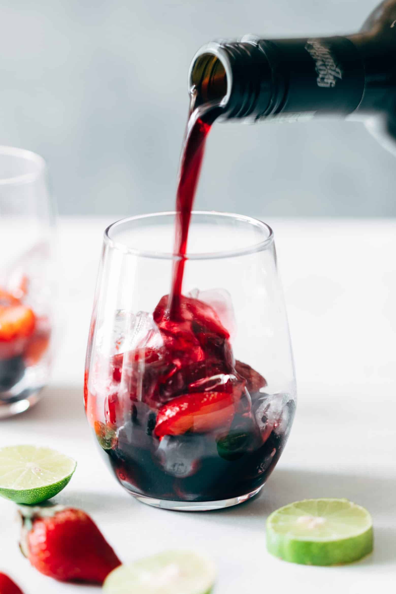 Сангрия с клубникой — идеально утоляющий жажду, летний напиток. Обладая сочностью и кисло-сладким вкусом, клубника хороша сама по себе, а в сочетаниях особенно. Самое популярное — клубника плюс ананас. Чтобы «вытащить» из ананаса как можно больше сахаров, его гриллируют. Это придает напитку дополнительную сладость и интересный аромат.