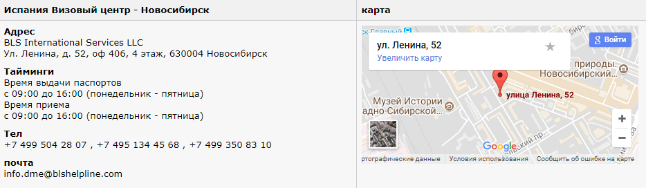 Адрес визового центра Испании в Новосибирске