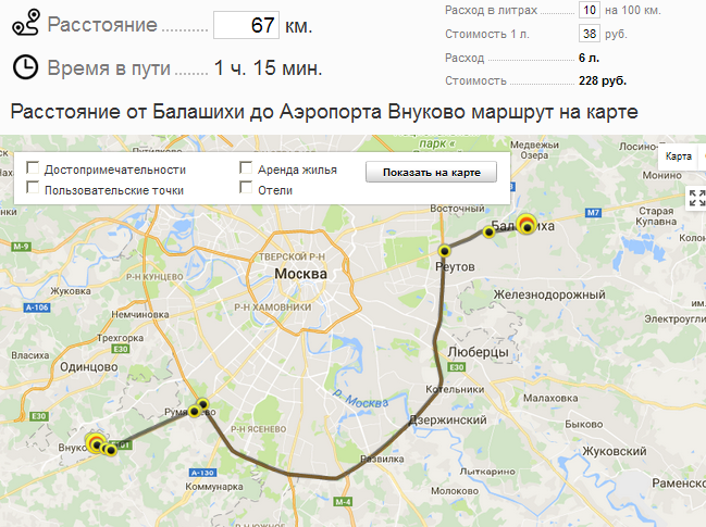 Стоимость поездки такси между Щелково и Аэропорт «Внуково»