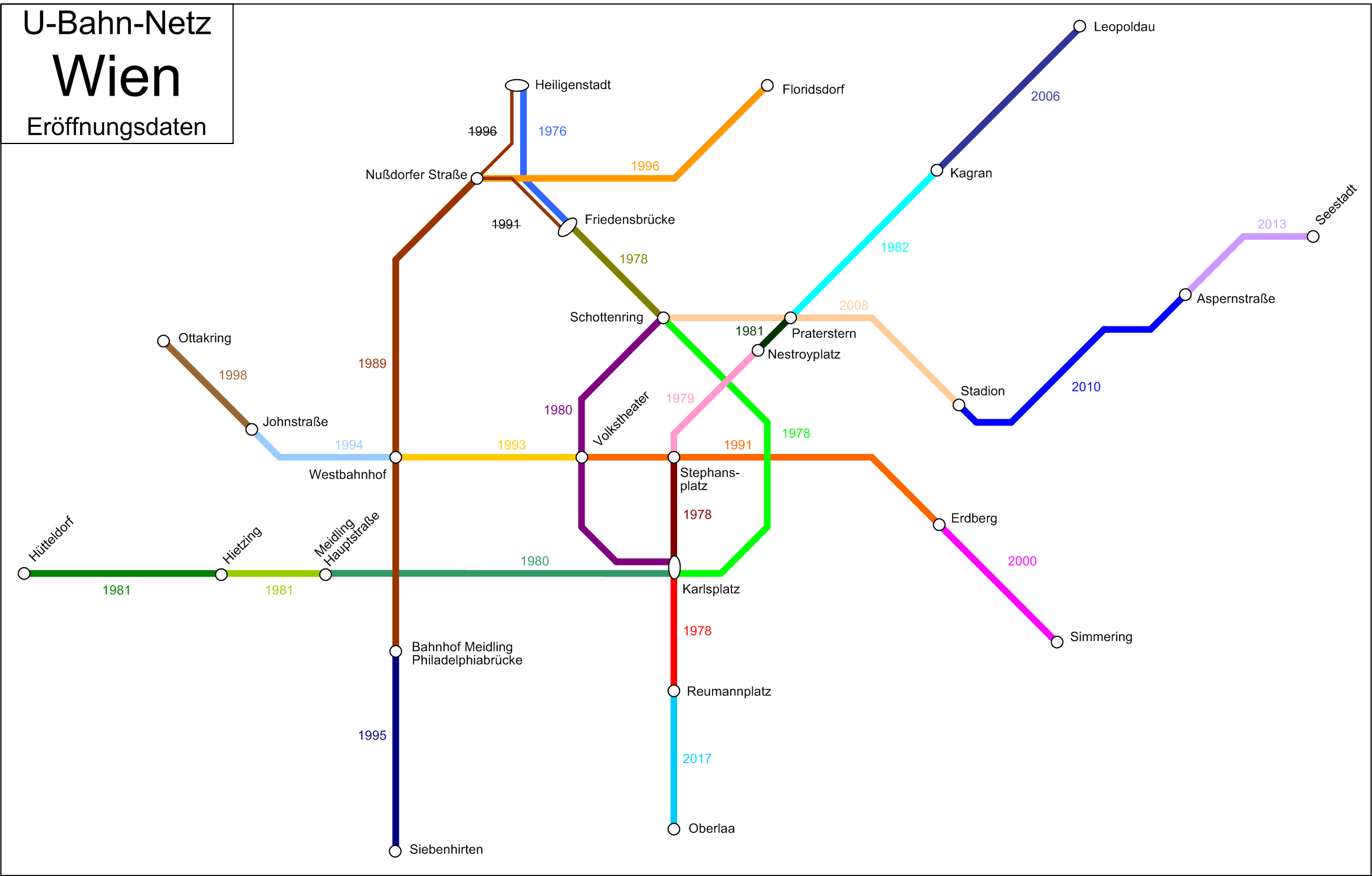 | Оттакринг Westbahnhof Volkstheater Stephansplatz Landstraße Erdberg Simmering | | | | | | 5:08 5:13 | 4:54 5:00 5:04 5:07 5:09 5:14 5:19 | 3-8 минут | 0:22 0:28 0:32 0:35 0:37 0:42 0:47 |