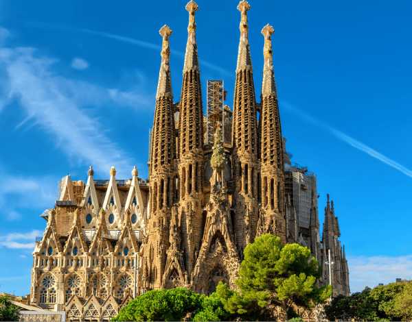 Саграда Фамилия имеет необычную форму латинского креста. Длина базилики внутри составляет 90 м, а ширина – 60 м. В высоту шпили достигают 170 м. Церковь является образцом сочетания двух стилей: модерна и неоготики. Большая часть элементов конструкции выполнена из бетонных плит, каждая из которых подгонялась под определенные размеры.