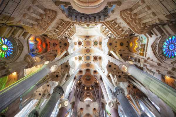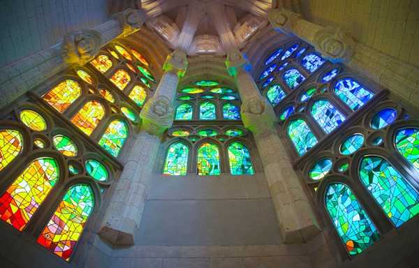 Внутри все подчинено законам геометрии, и, хотя архитектор понимал, что вряд ли сумеет завершить проект в полной мере, он заранее разработал идеальную конструкцию пересечения колонн, которая не только облегчала работу над отделкой помещений, но и не изменяла стилю мастера, предпочитавшего изогнутые линии прямым углам. Ни одно фото не способно передать сложности полученной конструкции, особенно с учетом игры красок, отбрасываемых цветными витражами.