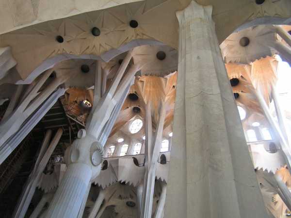 По мере приближения к сводам, колонны разветвляются, создавая невиданную доселе конструкцию в виде леса. Это необычное архитектурное решение изначально было продиктовано конструкционной необходимостью: поиском центра тяжести опирающейся на колонну части свода.
