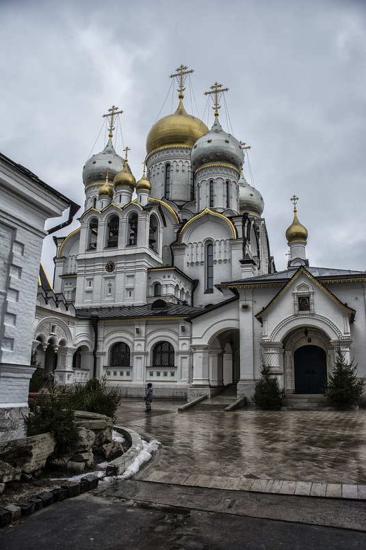 Формально на территории монастыря и в храмах можно фотографировать только с благословения настоятельницы. Мы этого не знали, поэтому фотографировали на территории свободно, но в соборе на наш вопрос, можно ли фотографировать, нам запретили, более того, охранники внимательно смотрели, чтобы мы украдкой не сделали кадр (хотя как огромной зеркалкой можно фотографировать тайком?). Особых ограничений по одежде я не заметила — встречались женщины и в брюках, заходили мамочки с колясками. Ну а в остальном — обычные правила поведения в монастыре.