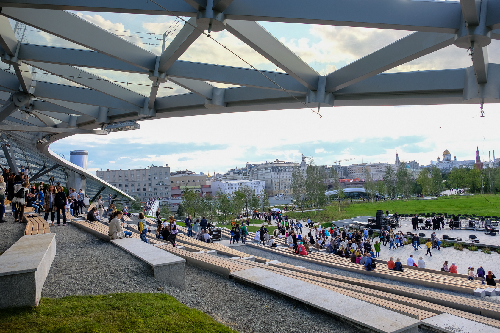 .Вид на кремль из парка «Зарядье»Медиацентр в парке «Зарядье» Умное освещение в парке Зарядье