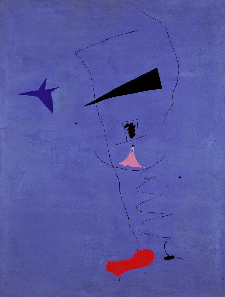 духовная чистота, синий цвет, который также является цветом снов. Одним из мастерских достижений Миро является то, что он оживил этот цвет лишь небольшим количеством символов и открыл безбрежную бесконечность воображения.