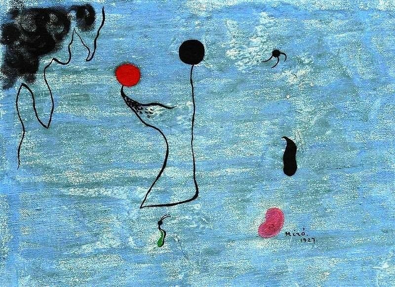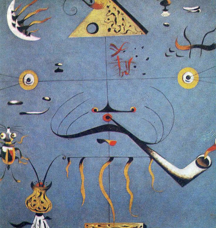 В мастерские на Бломе постоянно шлялись, почуяв родное, дадаисты типа Тристана Тцары и Пьера Реверди. Ну, еще там тусовались, скажем, Генри Миллер и Э. Хемингуэй, но это к делу не относится. А вот то, что там часто пребывали Антонен Арто, Поль Элюар, Робер Деснос и Жан Дюбюффе, относится. Ну, и понятно, какие там разговоры велись, с такой-то публикой. Психоанализ, подсознание, бессознательное, то, сё, фиго-моё, архетип-шмархетип. А потом там появился Бретон и придал этим разговорам твердую методологическую базу и теоретическое обоснование. Он еще купил несколько работ Миро, что было более чем актуально – Миро, в основном, питался тогда финиками. Вскоре появился первый манифест сюрреализма, и Миро был среди его подписантов. «Миро — самый большой сюрреалист среди нас», — говорил тогда Бретон.