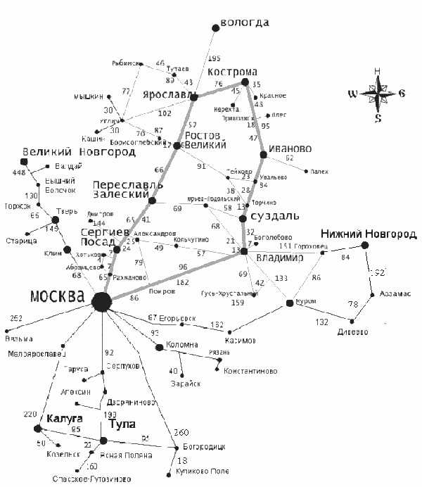 Карта. Золотое кольцо России: города и дороги, их соединяющие