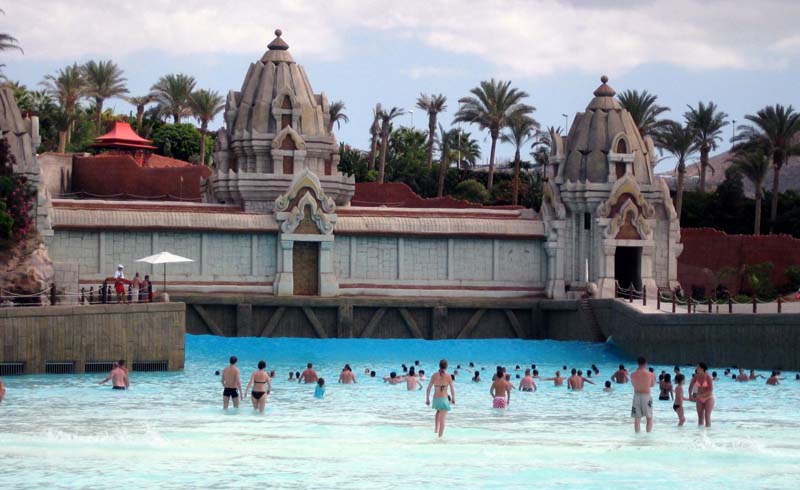 Огромный бассейн в аквапарке с настоящим белым песочным пляжем и искусственными волнами выглядит просто шикарно. Пляж этого «чуда» вмещает более тысячи человек, а волны позволяют вполне комфортно заниматься серфингом. Считается первым бассейном в мире с трёхметровой искусственной волной.